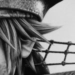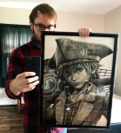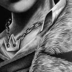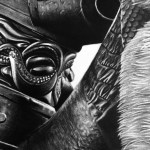This drawing is the biggest piece I’ve ever done, coming in at 24×18 inches. I started it in mid July and now that we’re coming close to September I have this drawing clocked in at over 120 hours of work.This is all done with graphite aside from the eyes which were done with blue colored pencils. This drawing has many different textures including skin, leather, sequenced leather, wrinkled leather, fur, hair, metal, rope, wood, cotton, and chrome! I’ve never drawn a lot of these textures before this project.