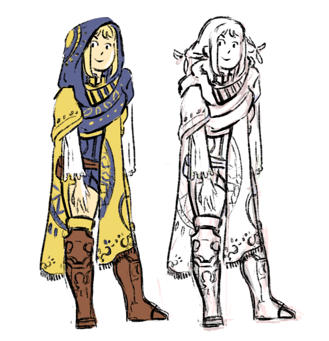 A redesign of Penelo for completion sake. I imagine she’s had to do a lot of errands in the desert and while obviously Dalmascan citizens don’t care for protections, I still wanted to give her a more functional garb that could help with the sun and the sand.